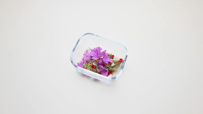 تقطيع سيقان الزهور ثم وضع الزهور في وعاء الزيت و تغطية الوعاء جيداً .